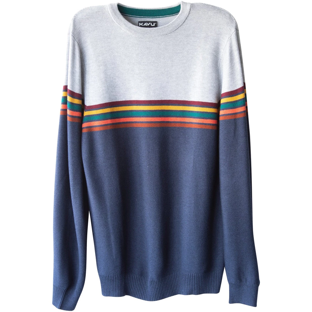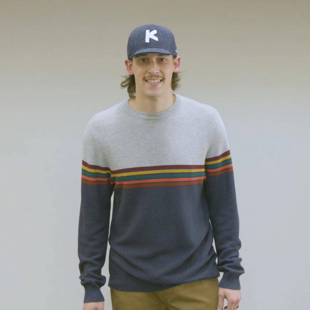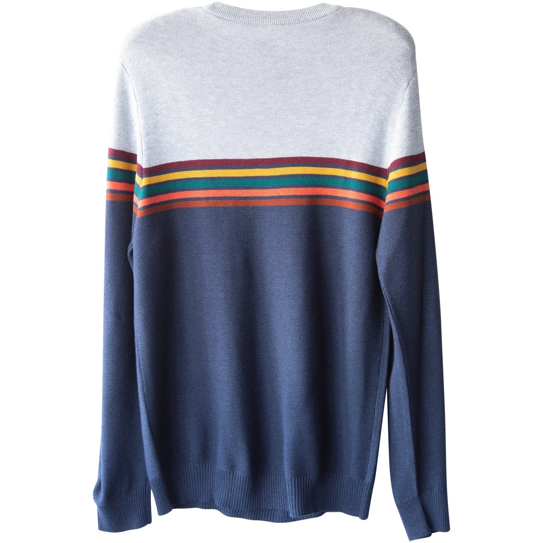Casual fit, garter stitch fully fashioned crew neck sweater, ribbed collar, cuffs and hem.