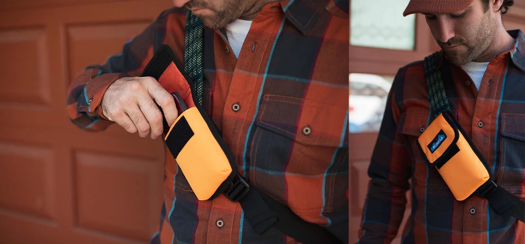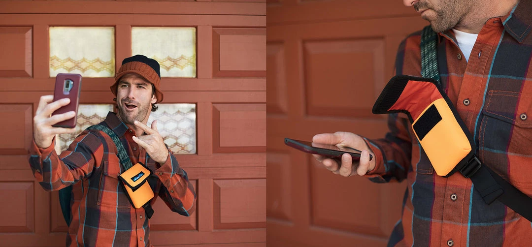 Cell phone pouch with Velcro flap, attach to strap of any KAVU Rope Collection sling pack style.