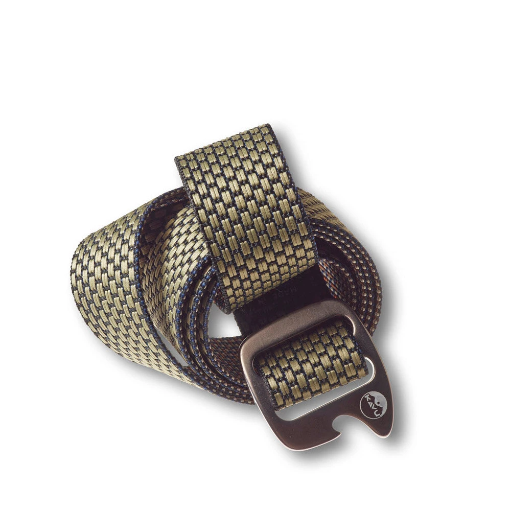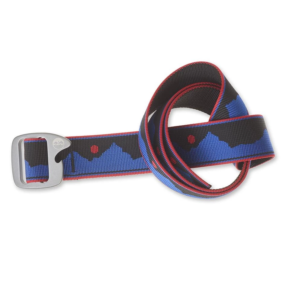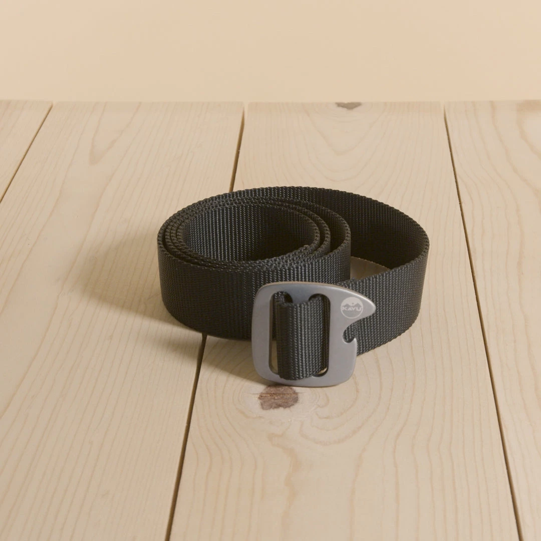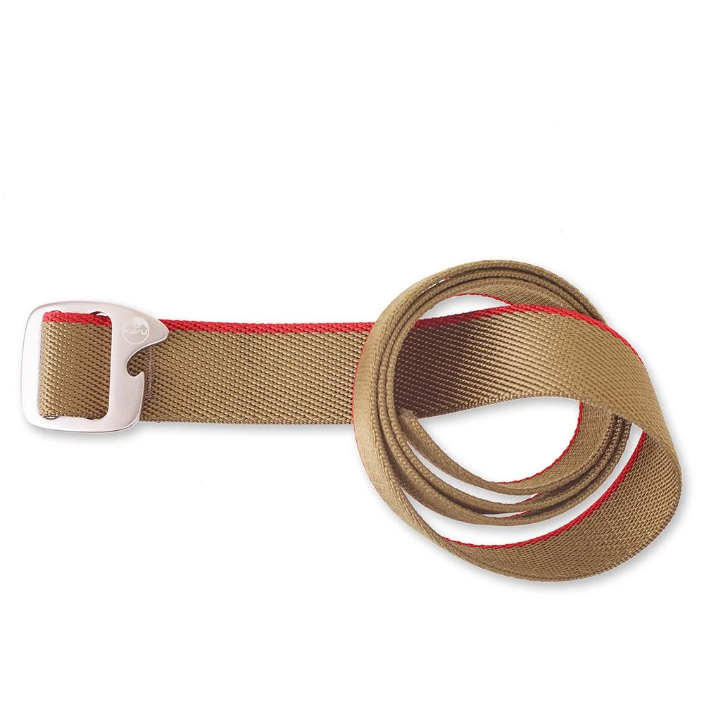 1.5” wide adjustable nylon webbing belt with built-in bottle opener on gunmetal buckle and KAVU embossed logo.