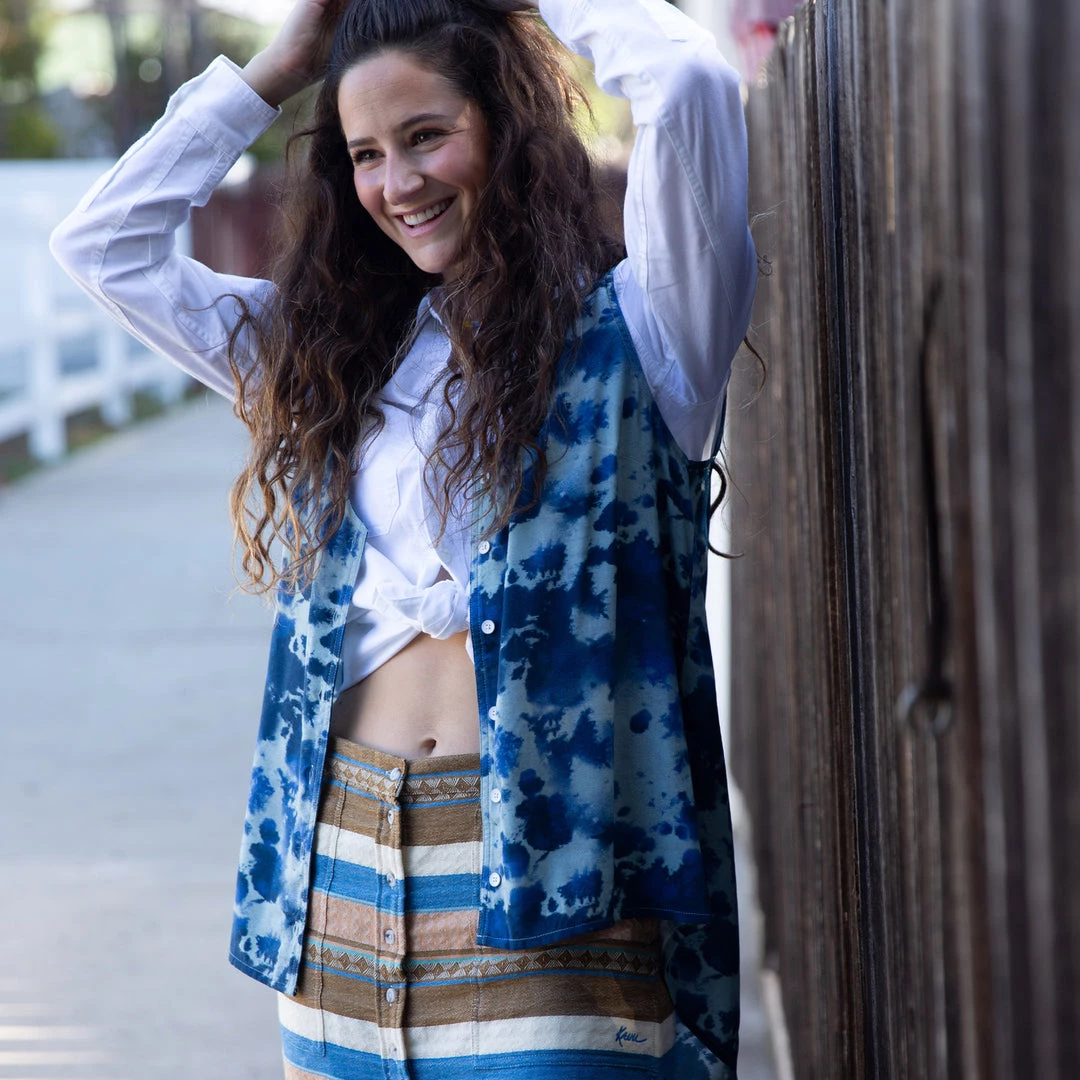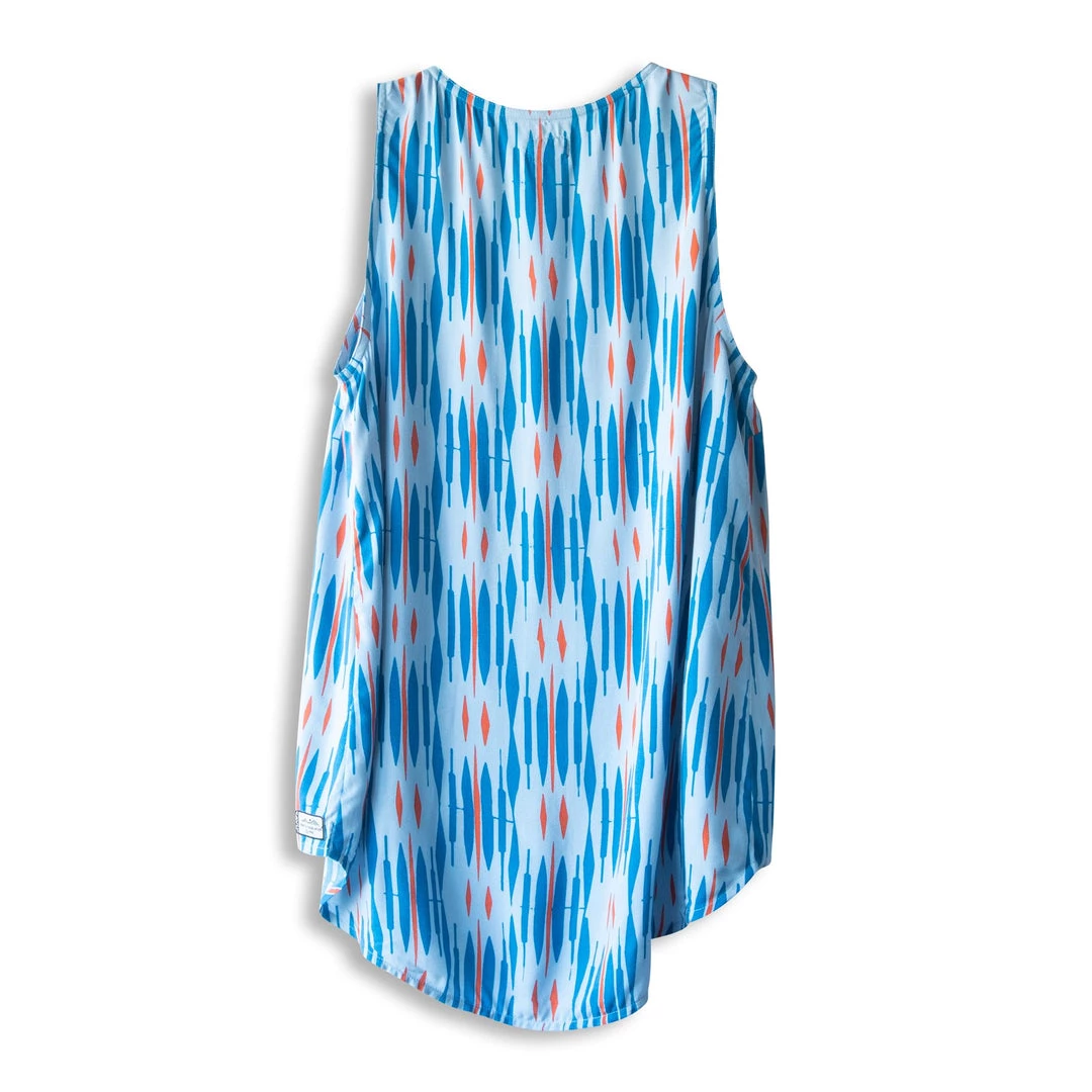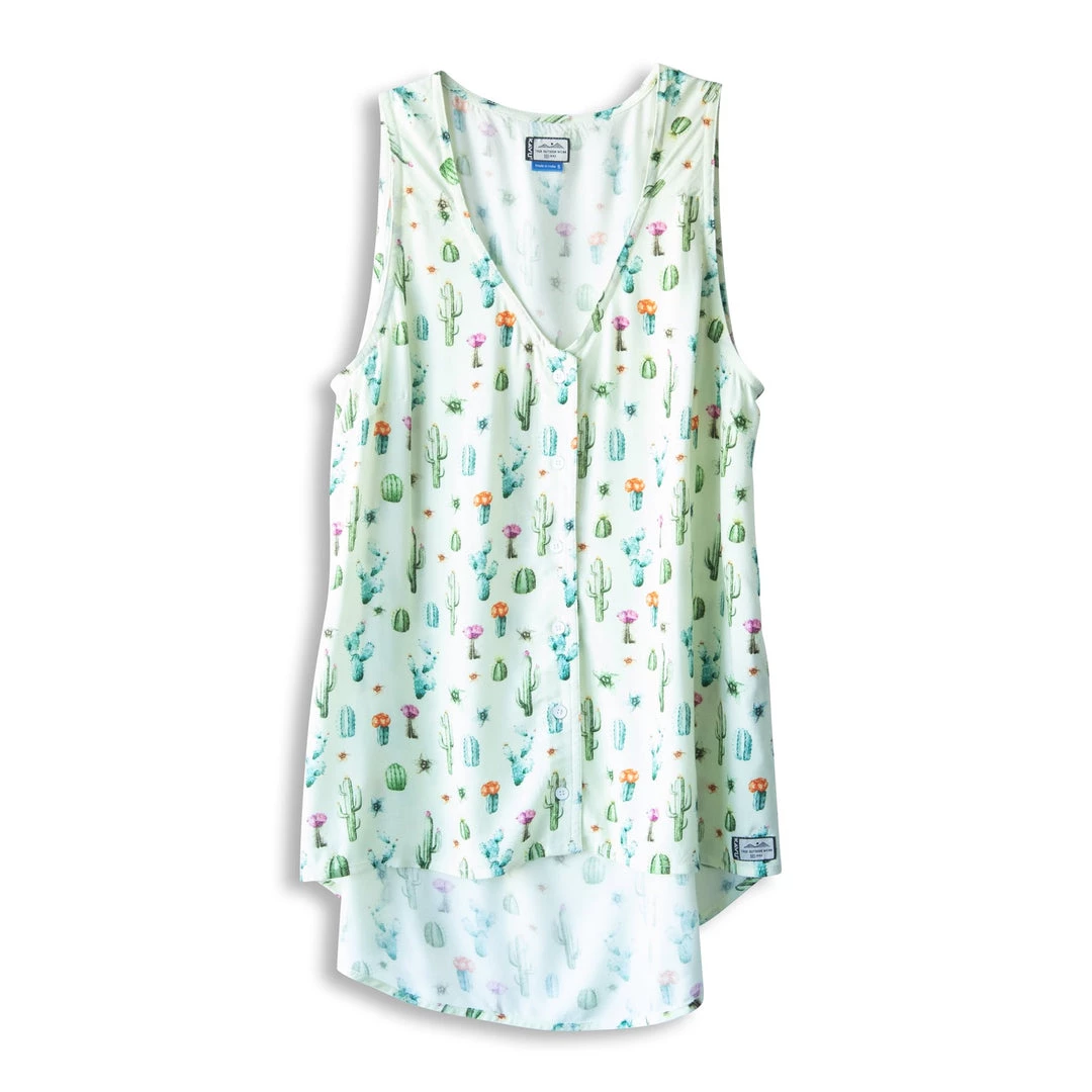 The lightweight butter-soft feel of the Beryl, combined with unique prints, has made this tank a best seller for years. Belt length in the front and low drop in the back, this button-up blouse will make you want to be outside on those warm sunny days.Â