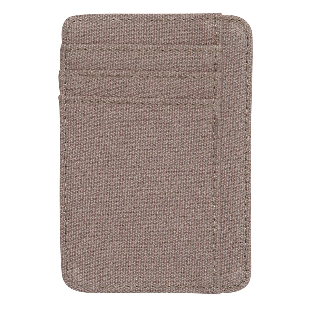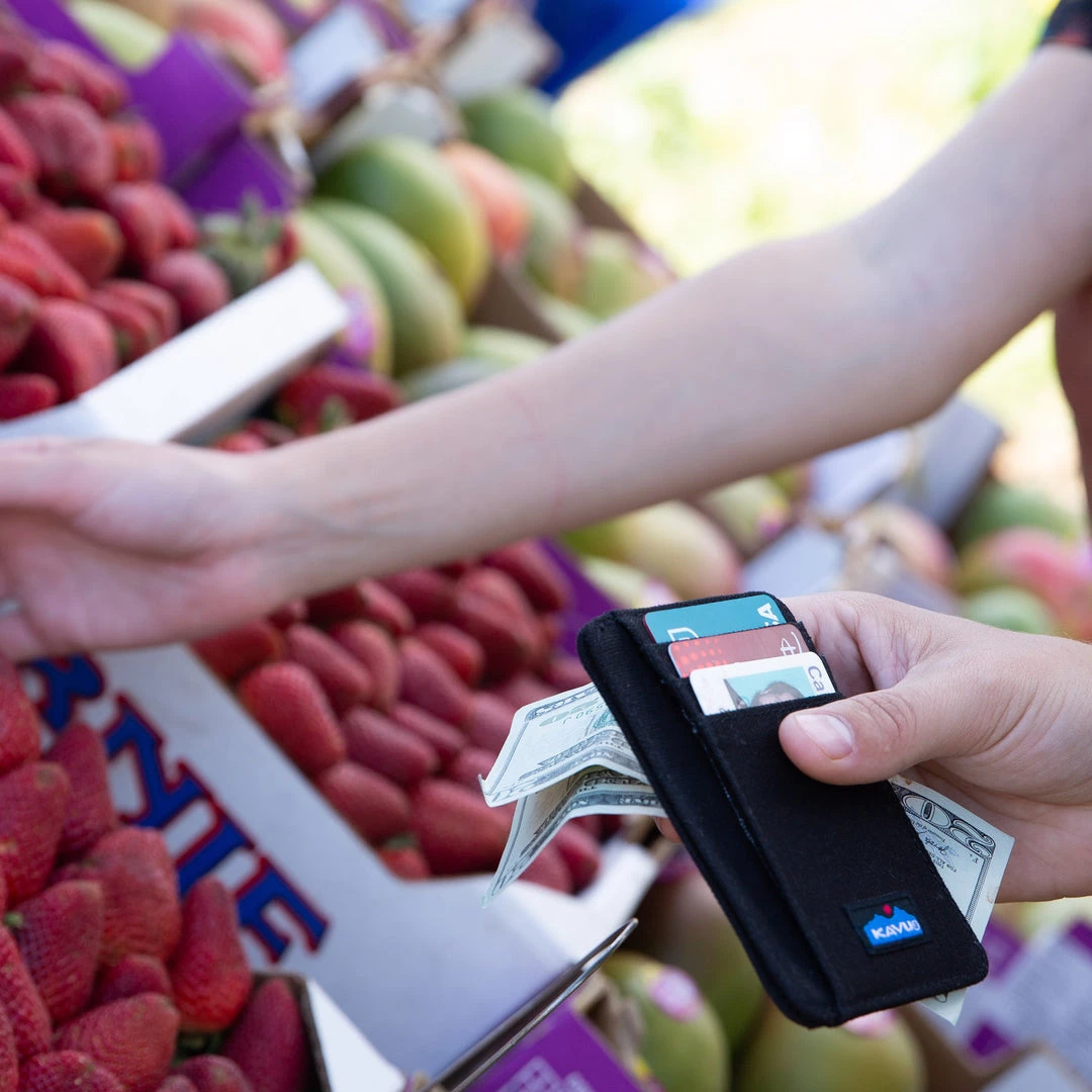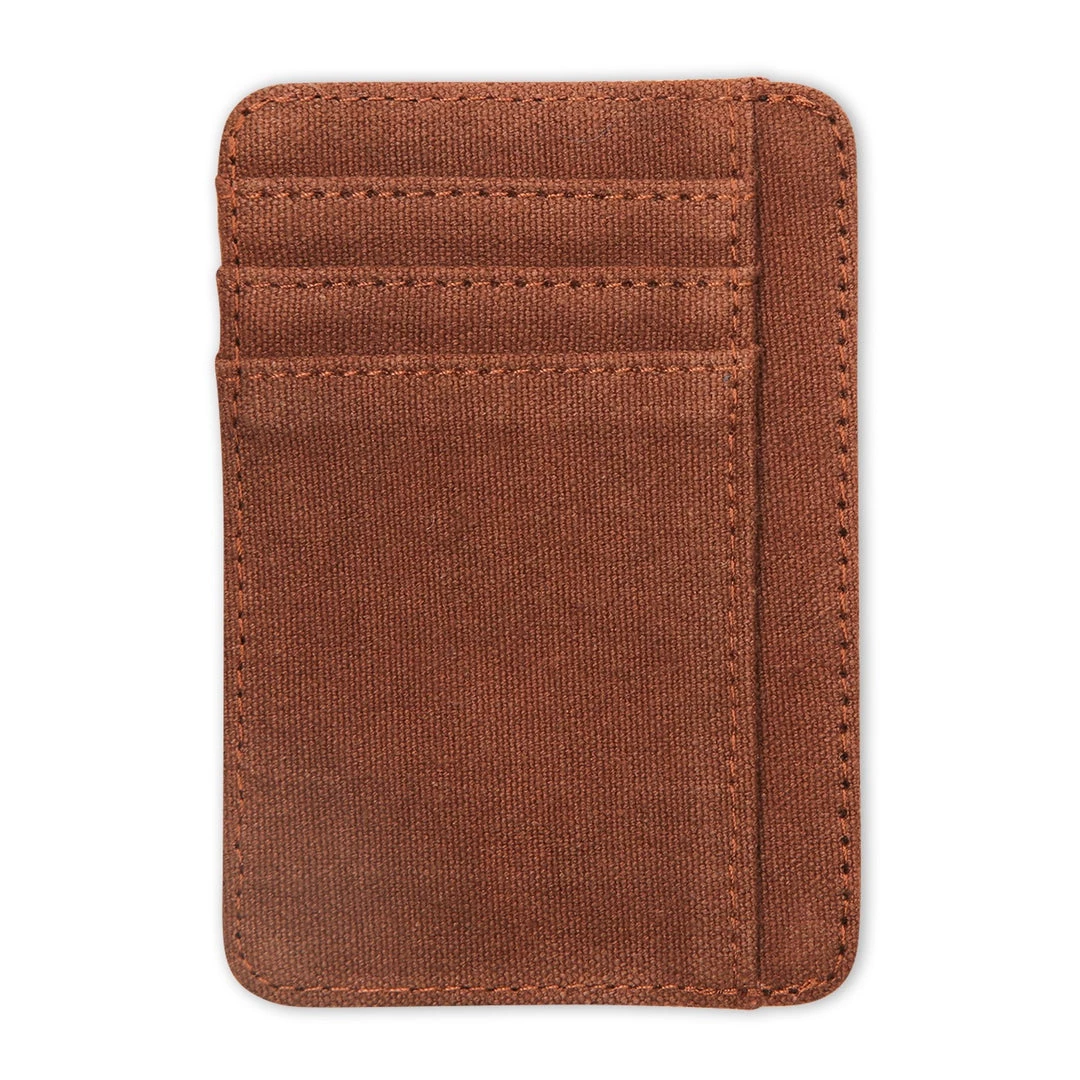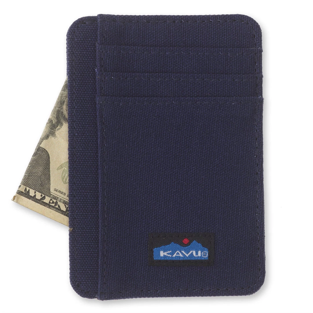 Double sided wallet with multiple cash, card, ID slots.