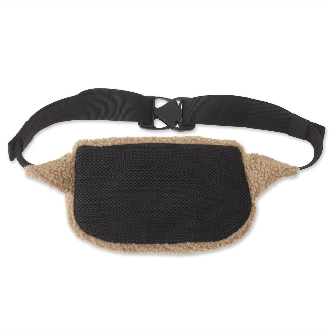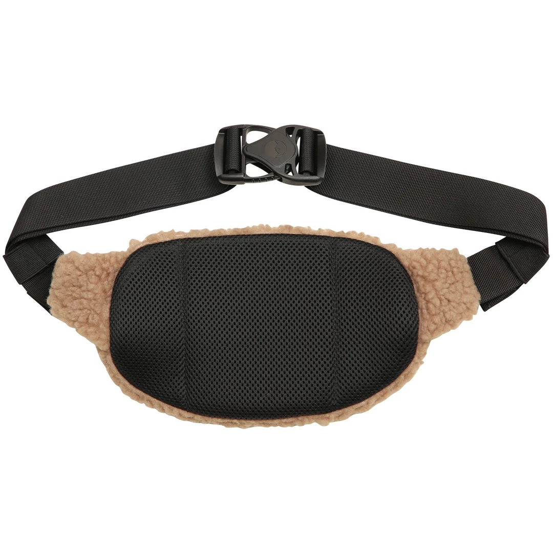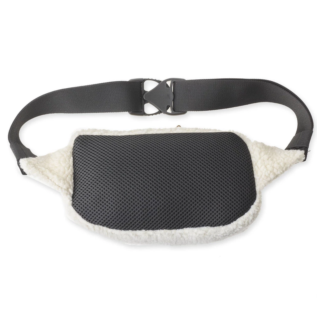 Belt bag with adjustable straps and side release buckle, two compartment design with zip closure, padded back panel.