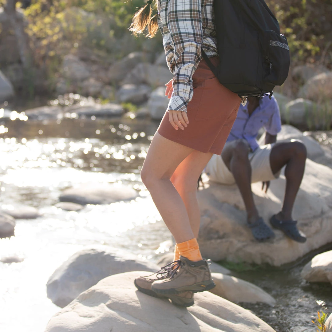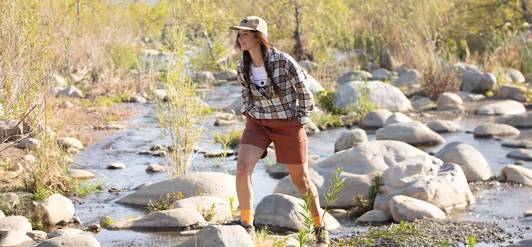 The Gibson Short is a women’s fit and cut evolution of the beloved Women’s Gibson Pant. Thoughtfully constructed with a cotton stretch fabric, belt buckle made from recycled material, and classic KAVU patterned webbing at the waist. This new style is core outdoor with heritage KAVU flare.