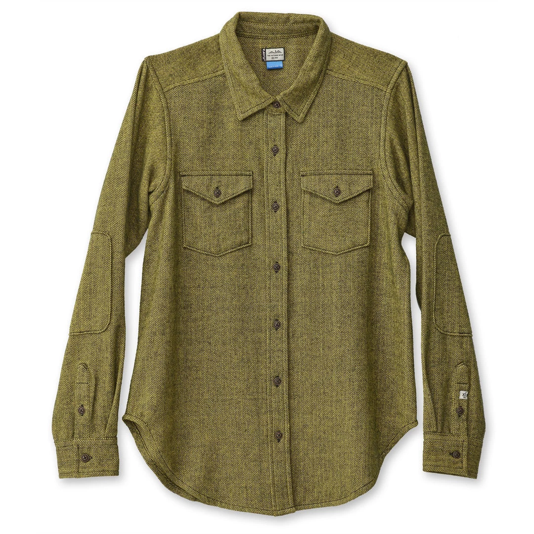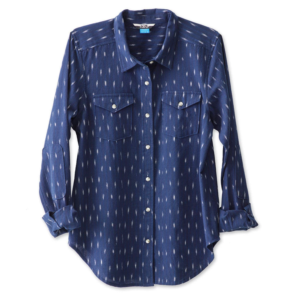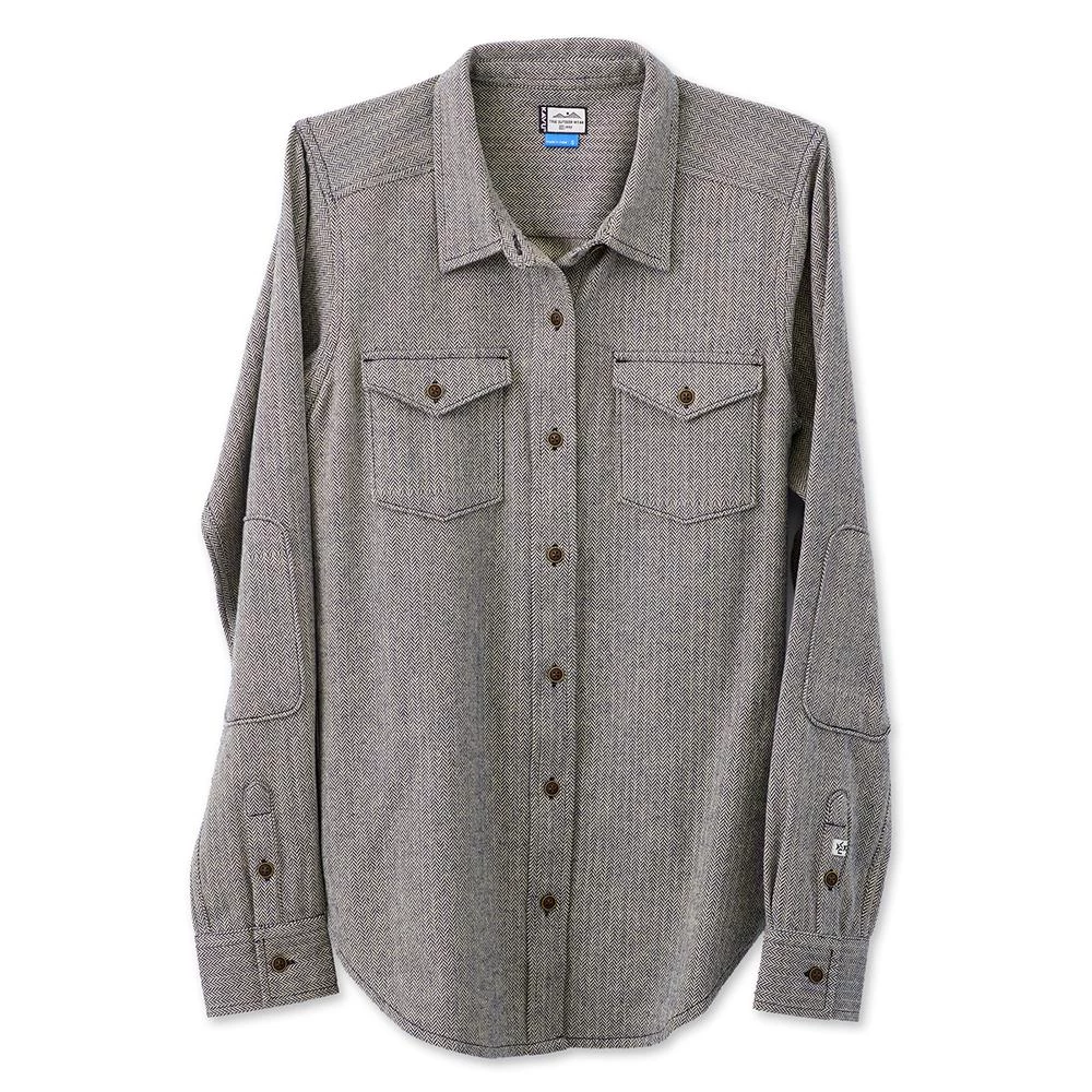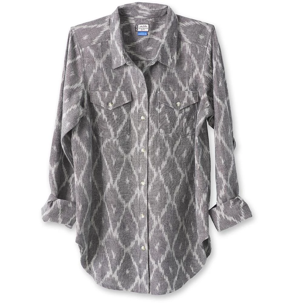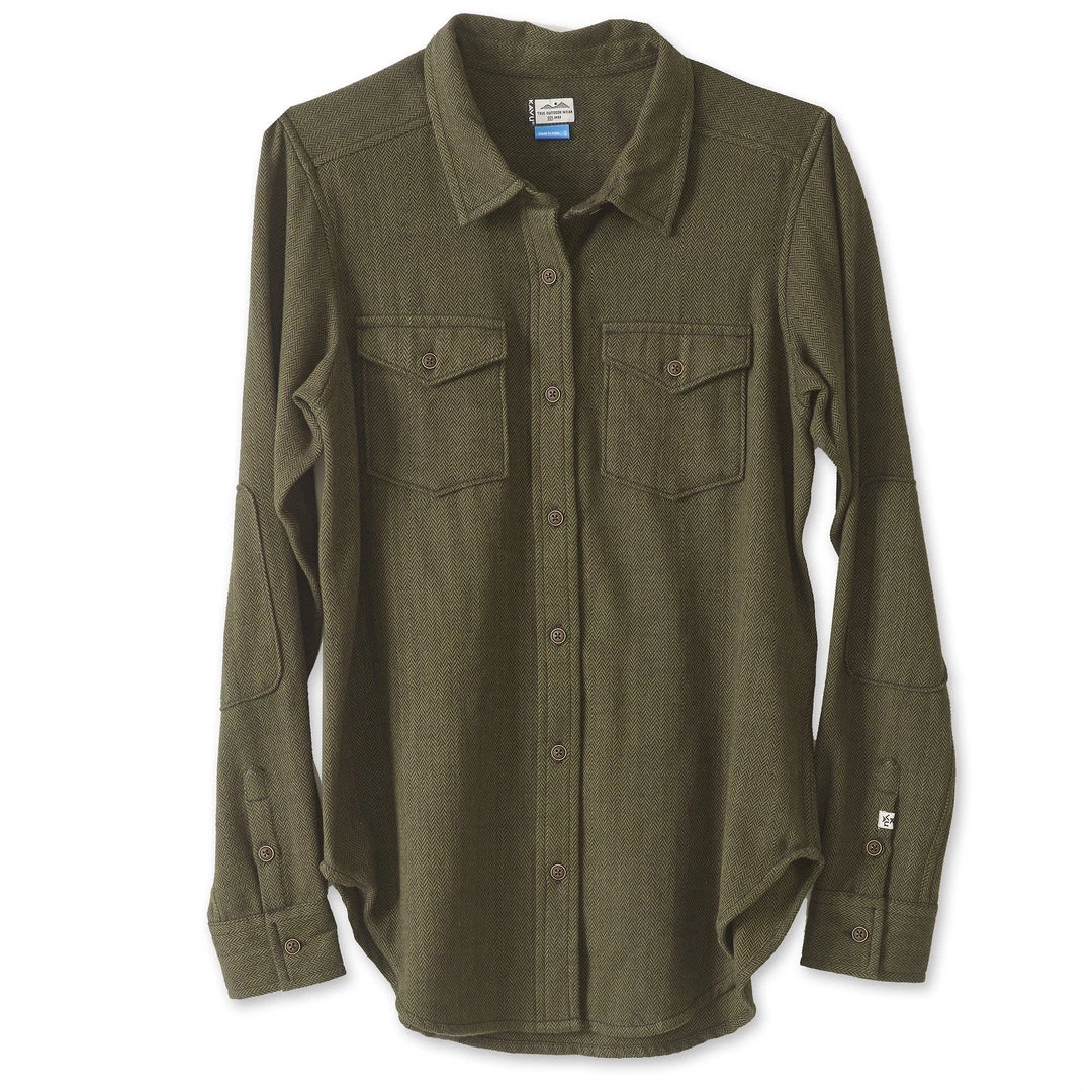 Boyfriend fit, long sleeve button up shirt, stand collar, two chest flap pockets, self fabric elbow patches, deep curved hem. So soft you won’t want to take it off but, thick enough to keep you cozy when you need it.