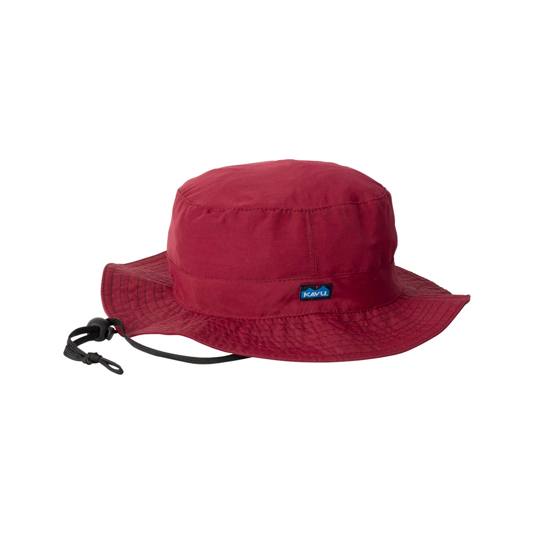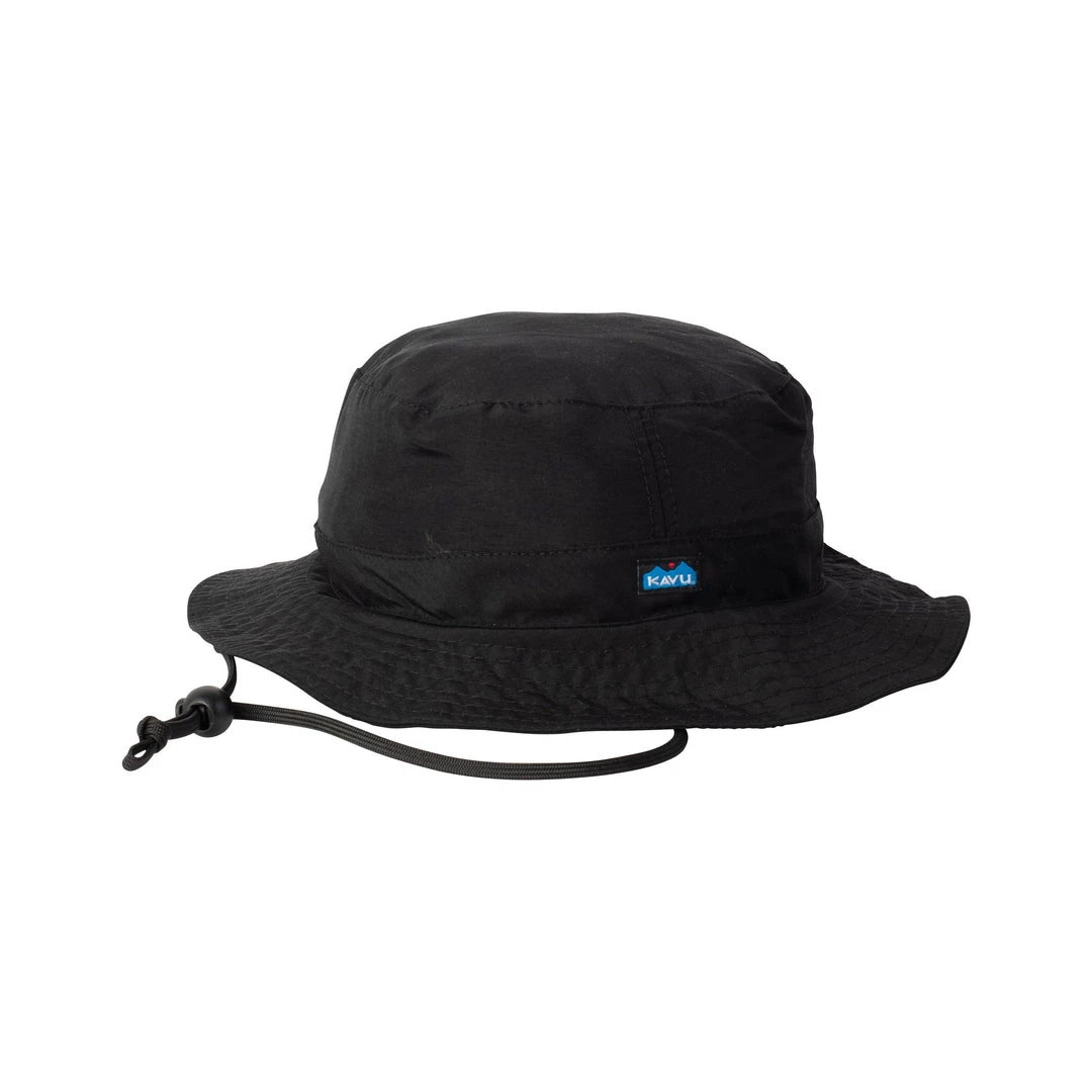 The lightweight KAVU Synthetic Strap Bucket sun hat is ready for all your summer adventures. The elastic headband wicks away sweat and other moisture, and the draw cord chinstrap with toggle lock keeps it as snug as you want. The 2” brim is just the right size to keep the sun out of your eyes without getting in the way of your pack. Yeehaw!