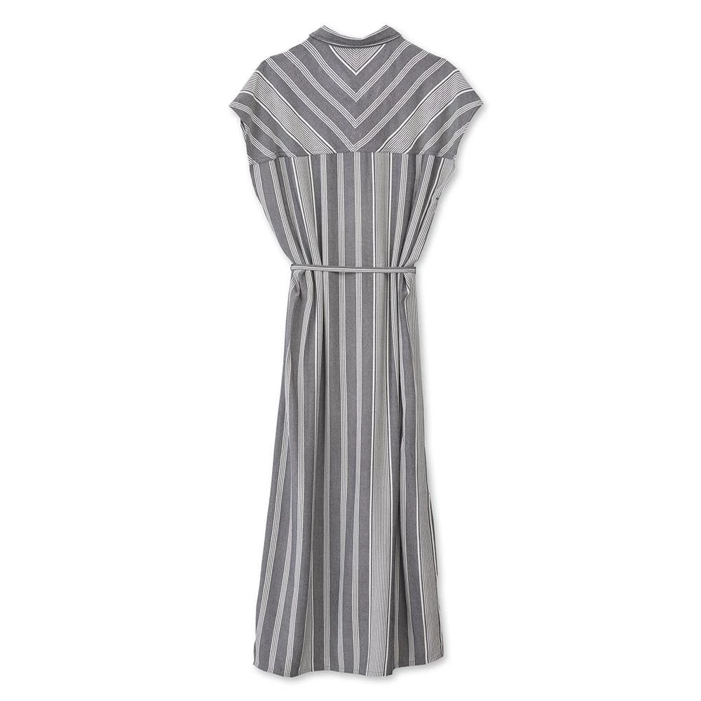 Free flow’n dolman sleeve button up dress, hidden placket, stand collar, two chest pockets, self-fabric waist belt, straight hem with side slits and 3″ back hem drop, length hits mid-calf.