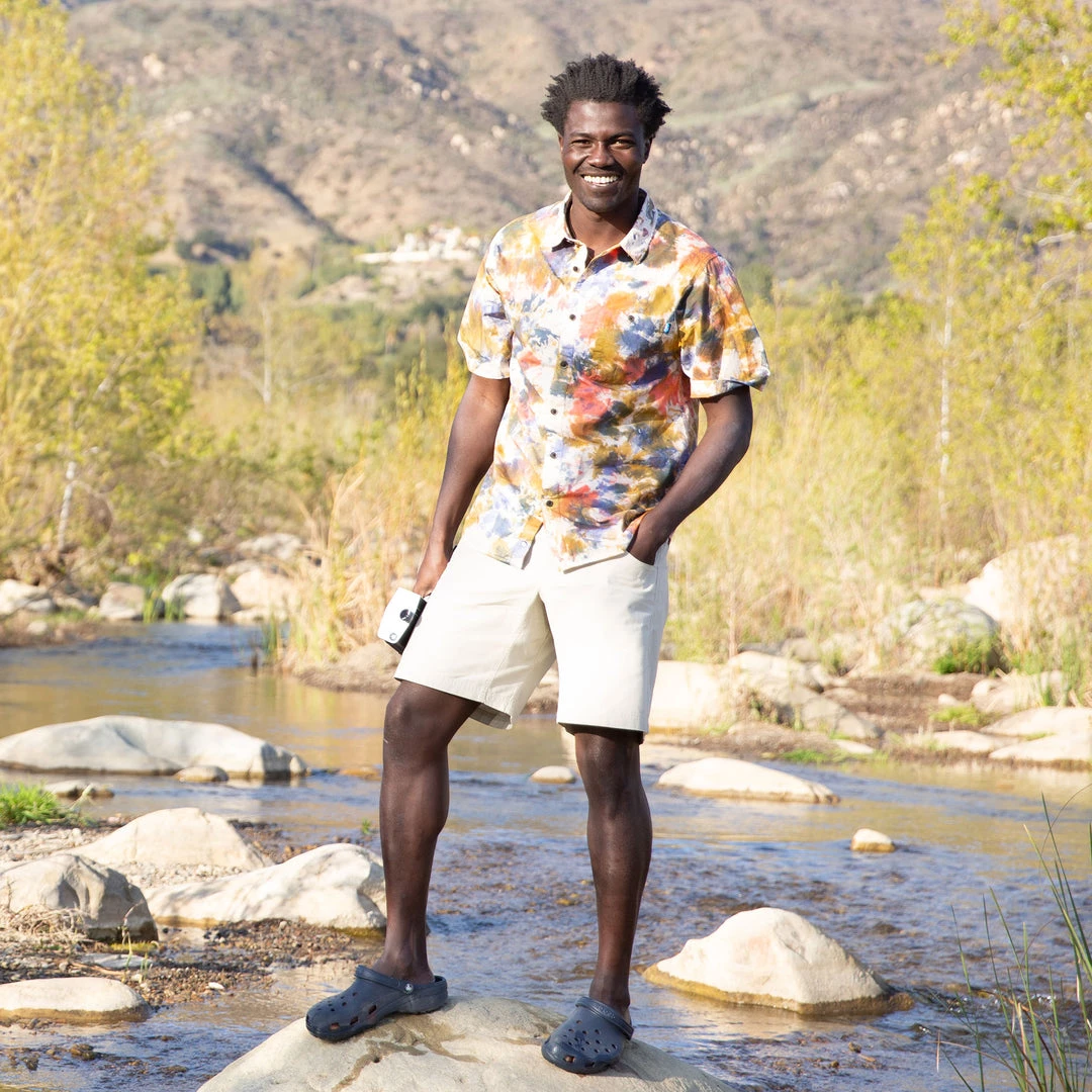 At KAVU we celebrate the independent spirit. The Excellent Adventure is this spirit in garment form. Sure, this handsome devil is made with 100% cotton poplin weave and 25% certified recycled polyester faux wood buttons, but every single shirt is hand tie-dyed. This means no two pieces are the same and your Excellent Adventure will be just as unique as you.