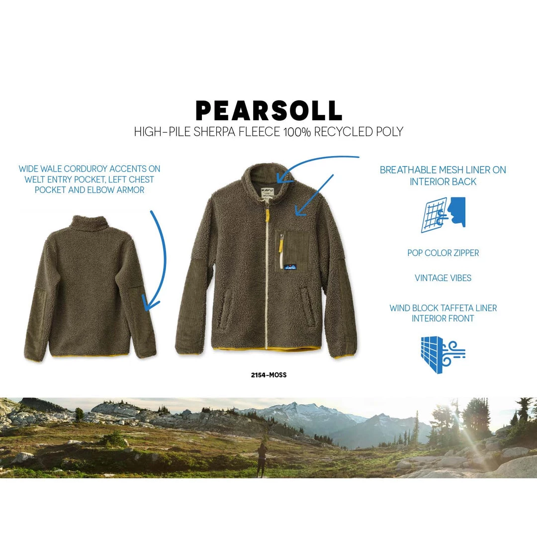 Make your winter road trips extra cozy with the Pearsoll. Hop in and out of your car on the lookout points of HWY 101 with confidence. This high pile Sherpa fleece jacket has wind blocking taffeta in the front and breathable mesh lining on back. The Pearsoll is engineered for good times.