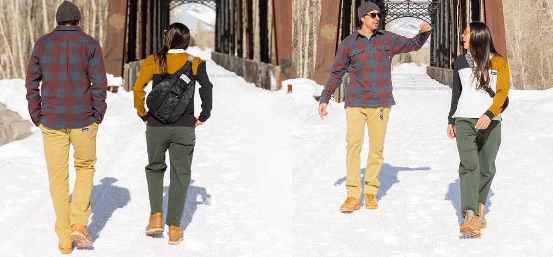 KAVU designers dug through the archives and came up with a another winner. The new Scrag Pant is updated and redesigned from a 1999 style of the same name. Now made with organic cotton and elastic stretch, a KAVU webbing belt, and a gusset. Busy Livin’ at its finest.