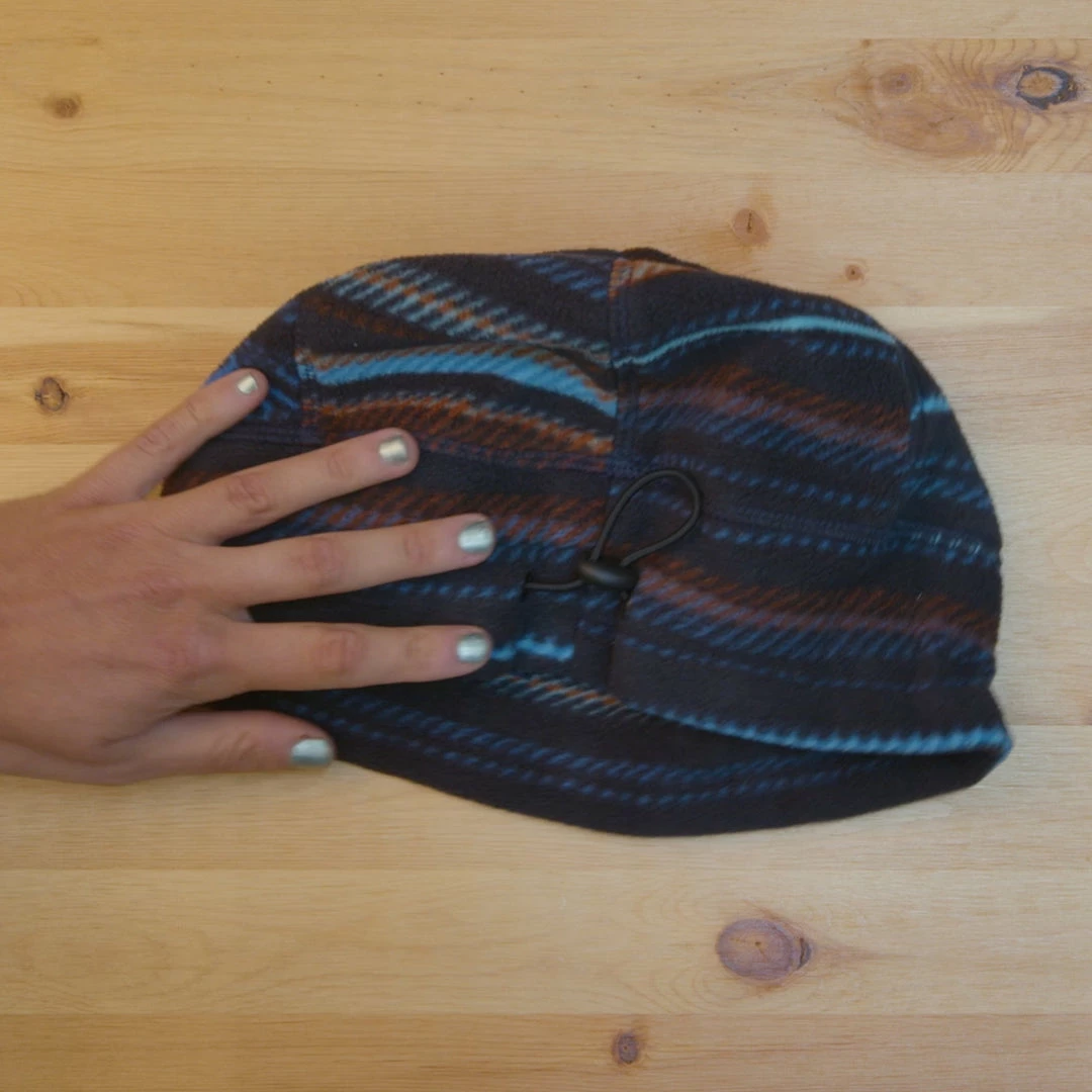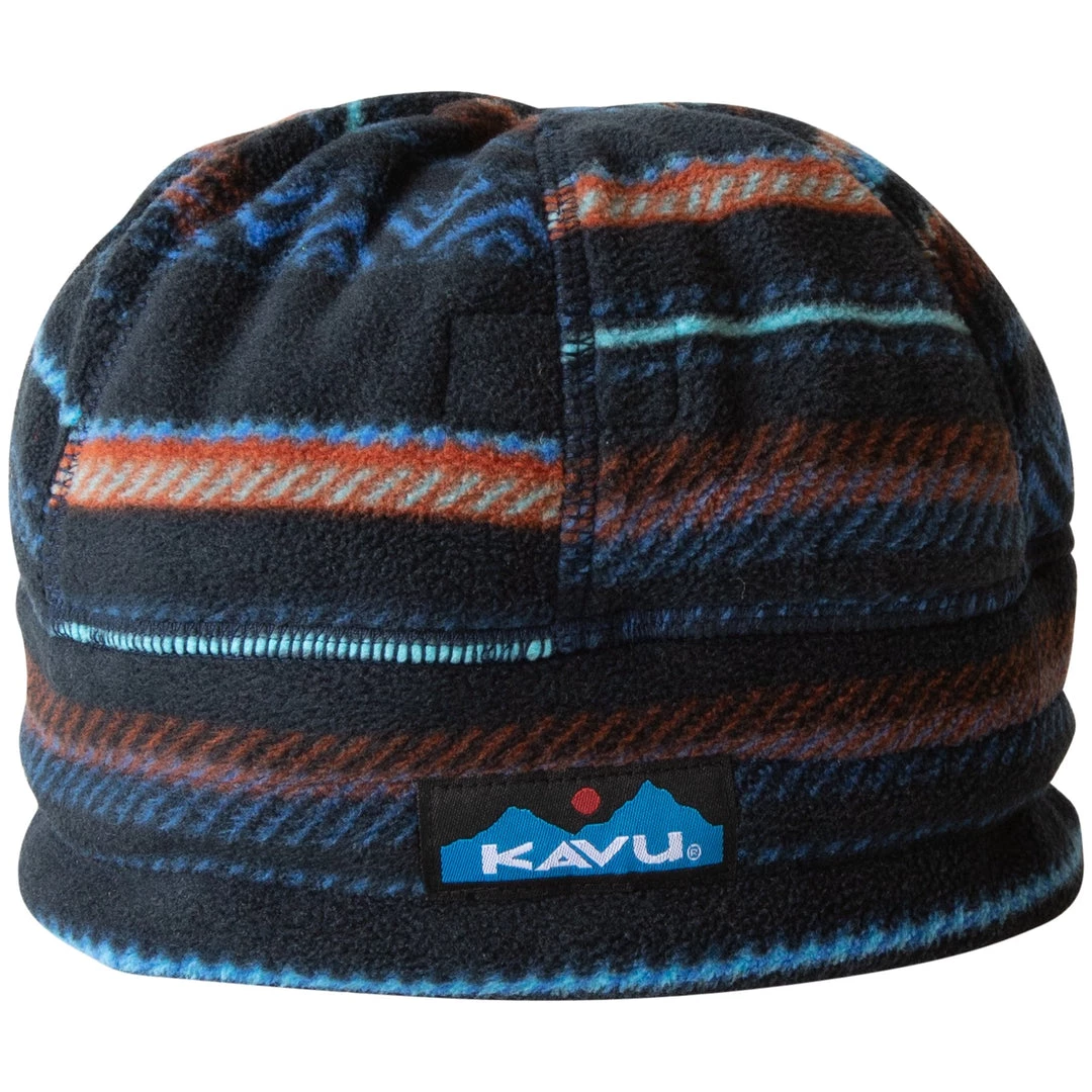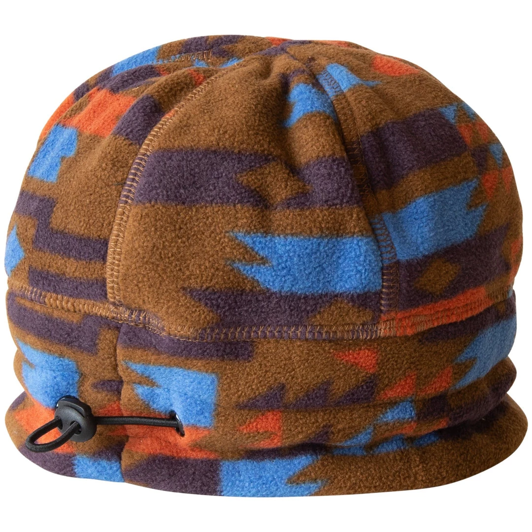 Meticulously constructed printed fleece beanie with pieced band and round dome, the bungee cord and lock back adjustment to cinch tight during whiteouts and flatlock seams throughout. Â