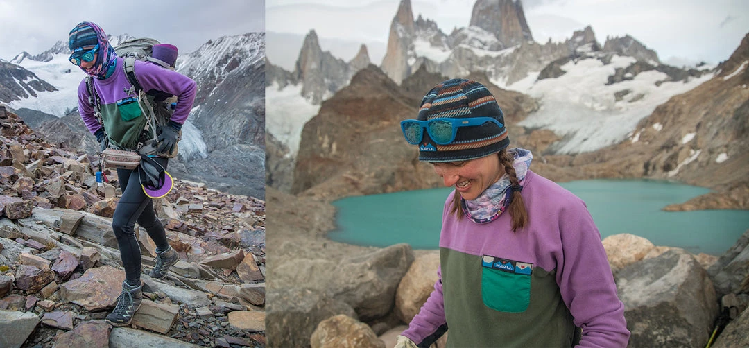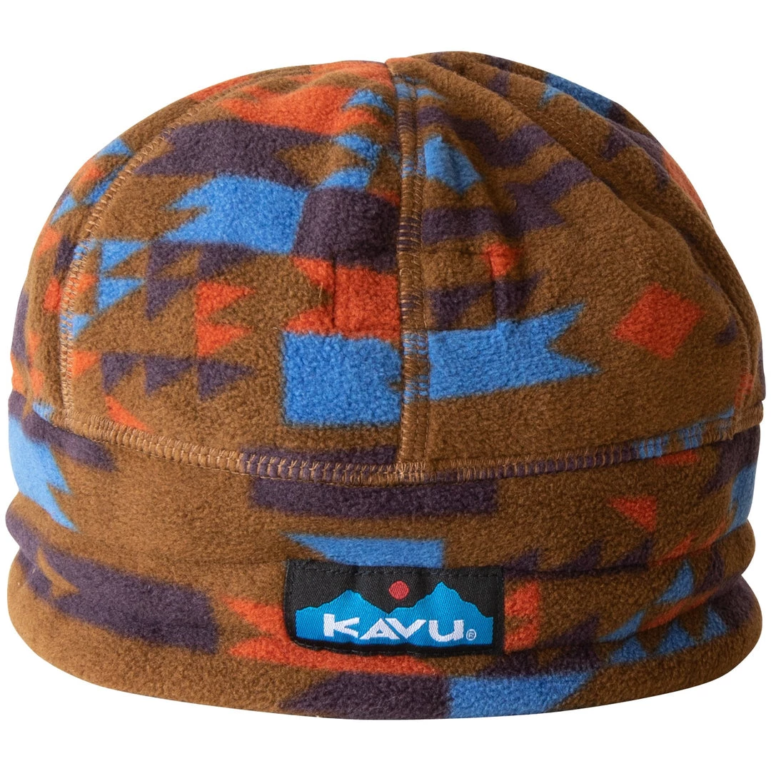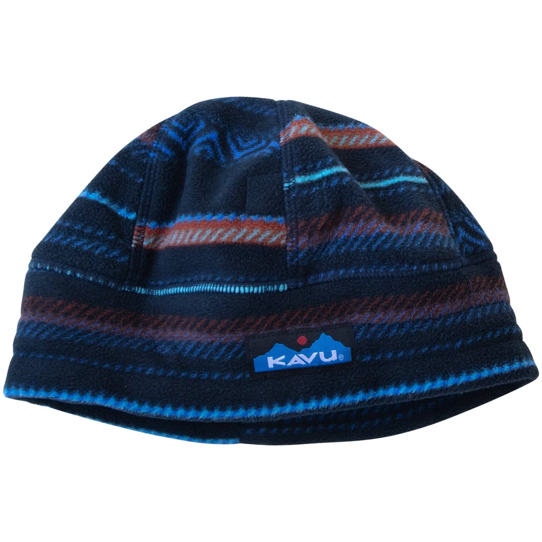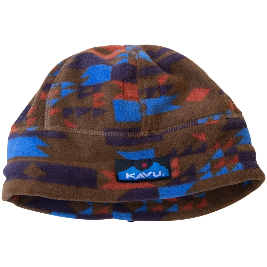 Meticulously constructed printed fleece beanie with pieced band and round dome, the bungee cord and lock back adjustment to cinch tight during whiteouts and flatlock seams throughout. Â