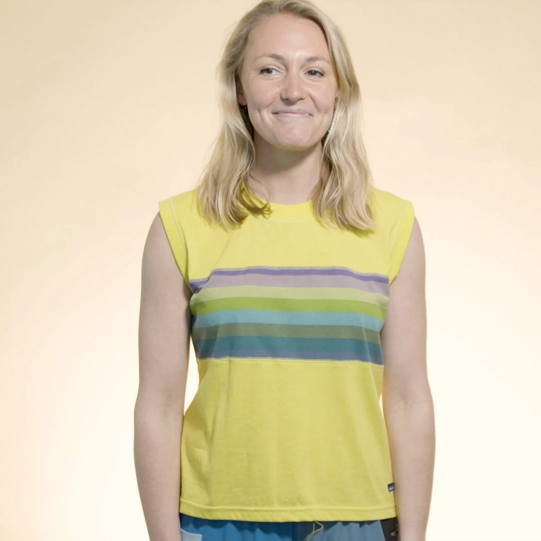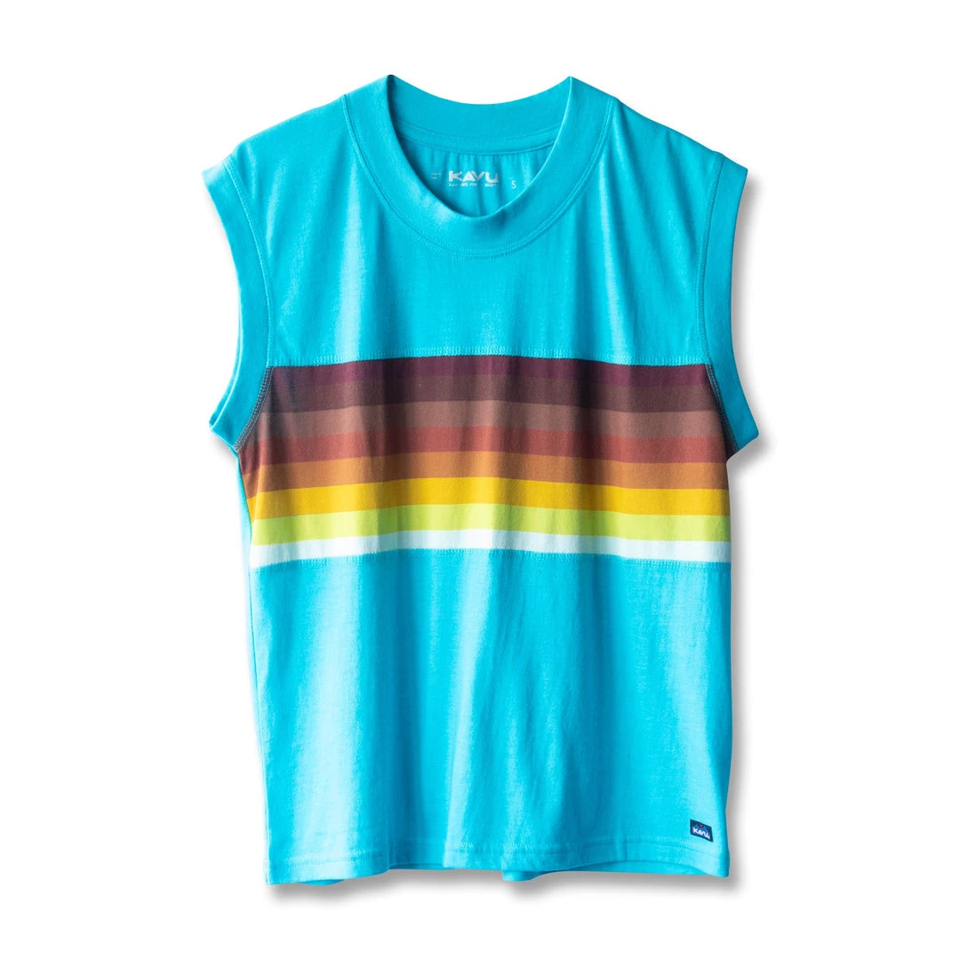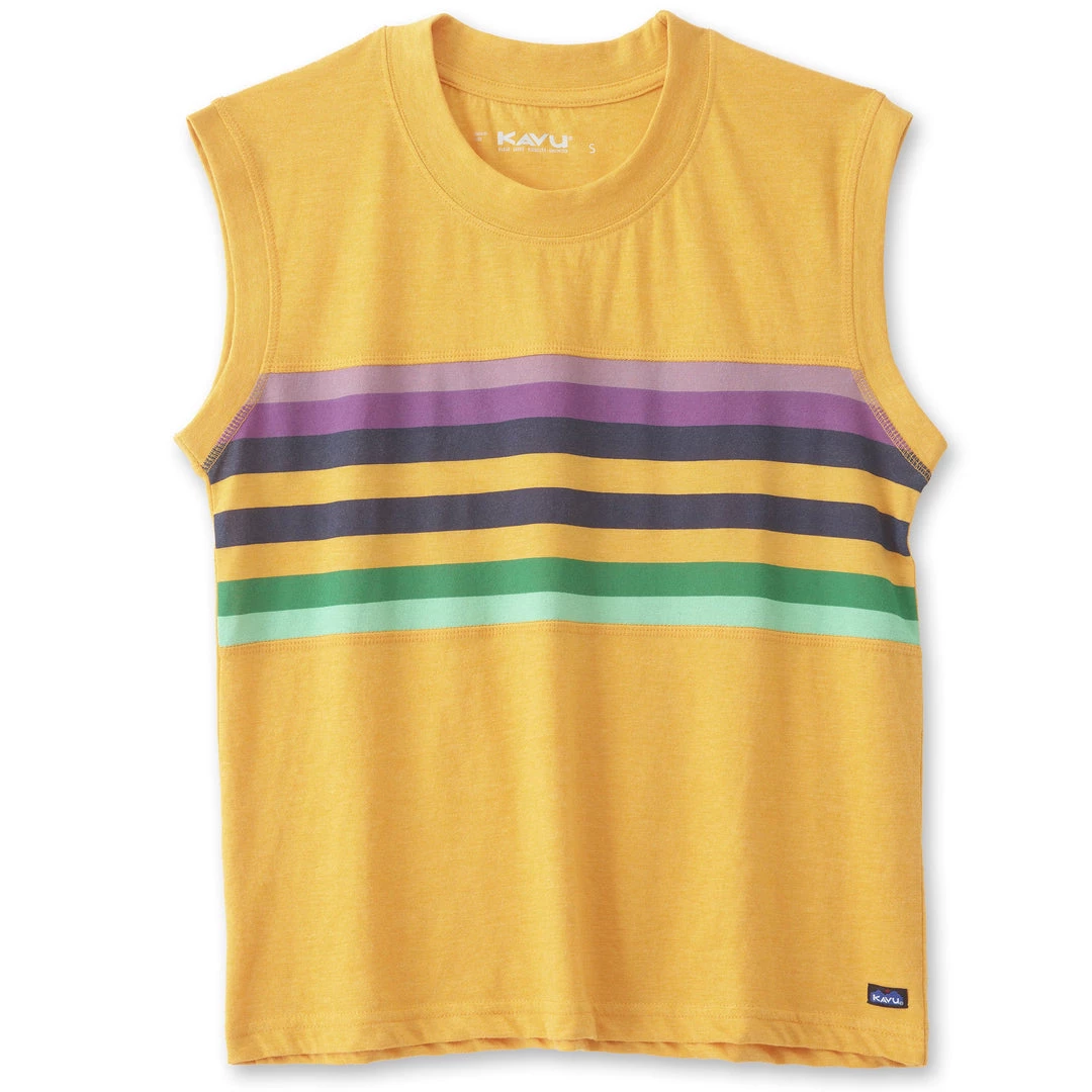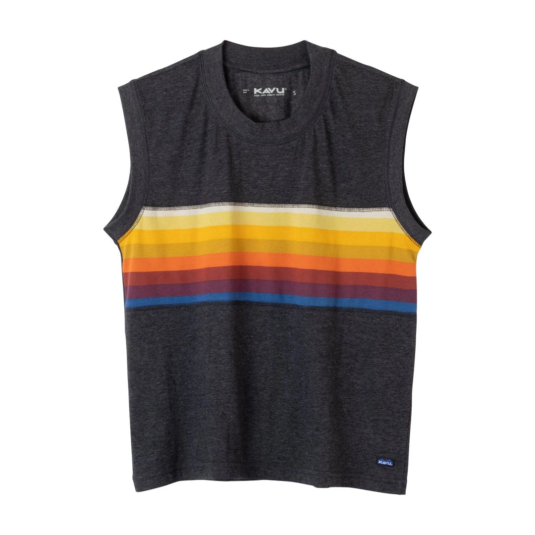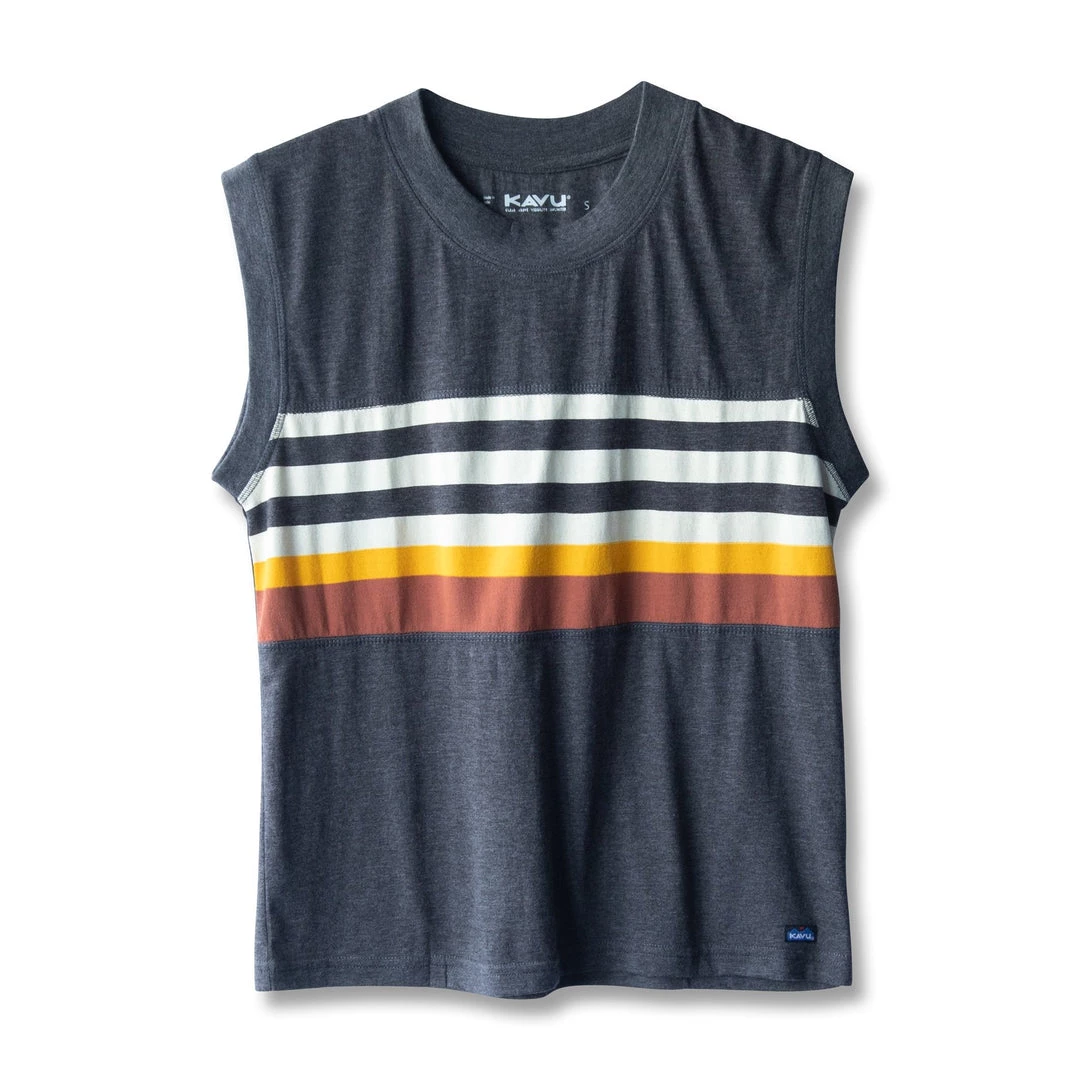 From yoga class to the crag, stay nice and cool in the Tuva tank. This muscle tank designed with fun, bright stripes is easy to wear and has become a KAVU fan favorite.Â