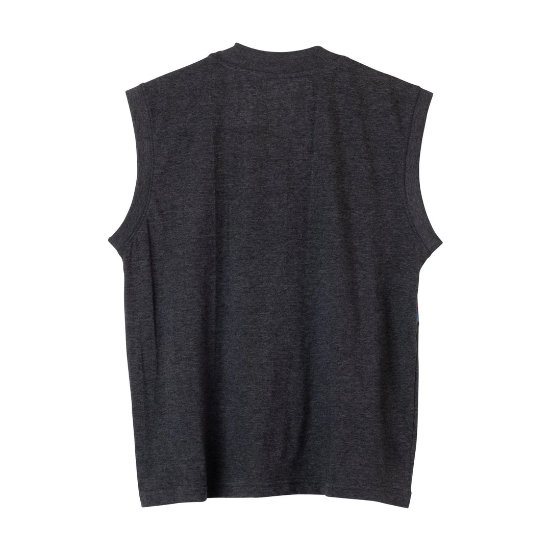 Semi fitted tank top, crew neckline, ribbed neck & armhole trim, multi-stripe screen print on center front chest.