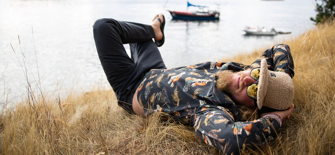 The Valdez is the fall version of our top-selling spring shirt – The Jam. And just like its warm-blooded brethren, it’s a bonafide fiesta starter. Sure, it’s made with 3.5oz 100% cotton and a supple poplin weave but, the real headline is the amazing digitally printed colorway complete with all your favorite mythical beasts.