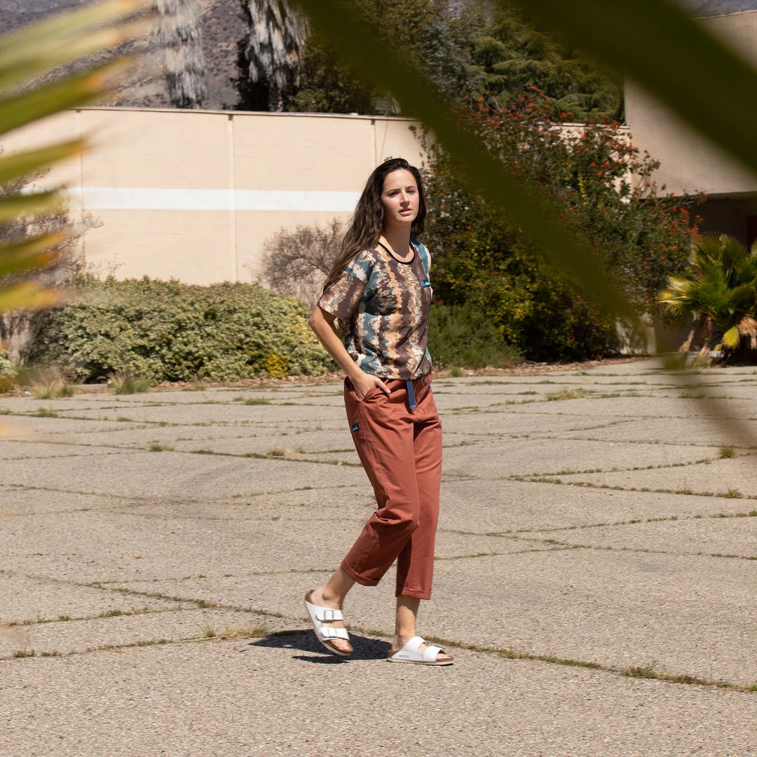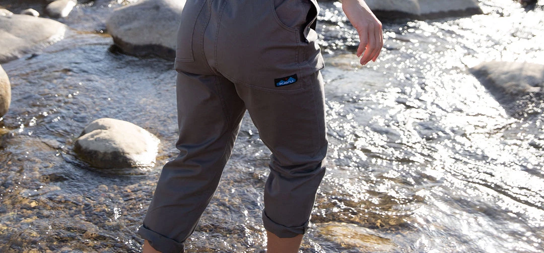 The Gibson pant is a women’s fit and cut evolution of the beloved Men’s Chilliwack pant. Thoughtfully constructed with a cotton stretch material, belt buckle made from recycled material and classic KAVU patterned webbing. These details combined created a new style with heritage KAVU flare.