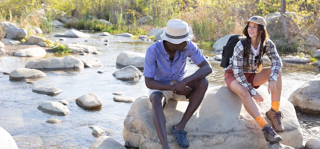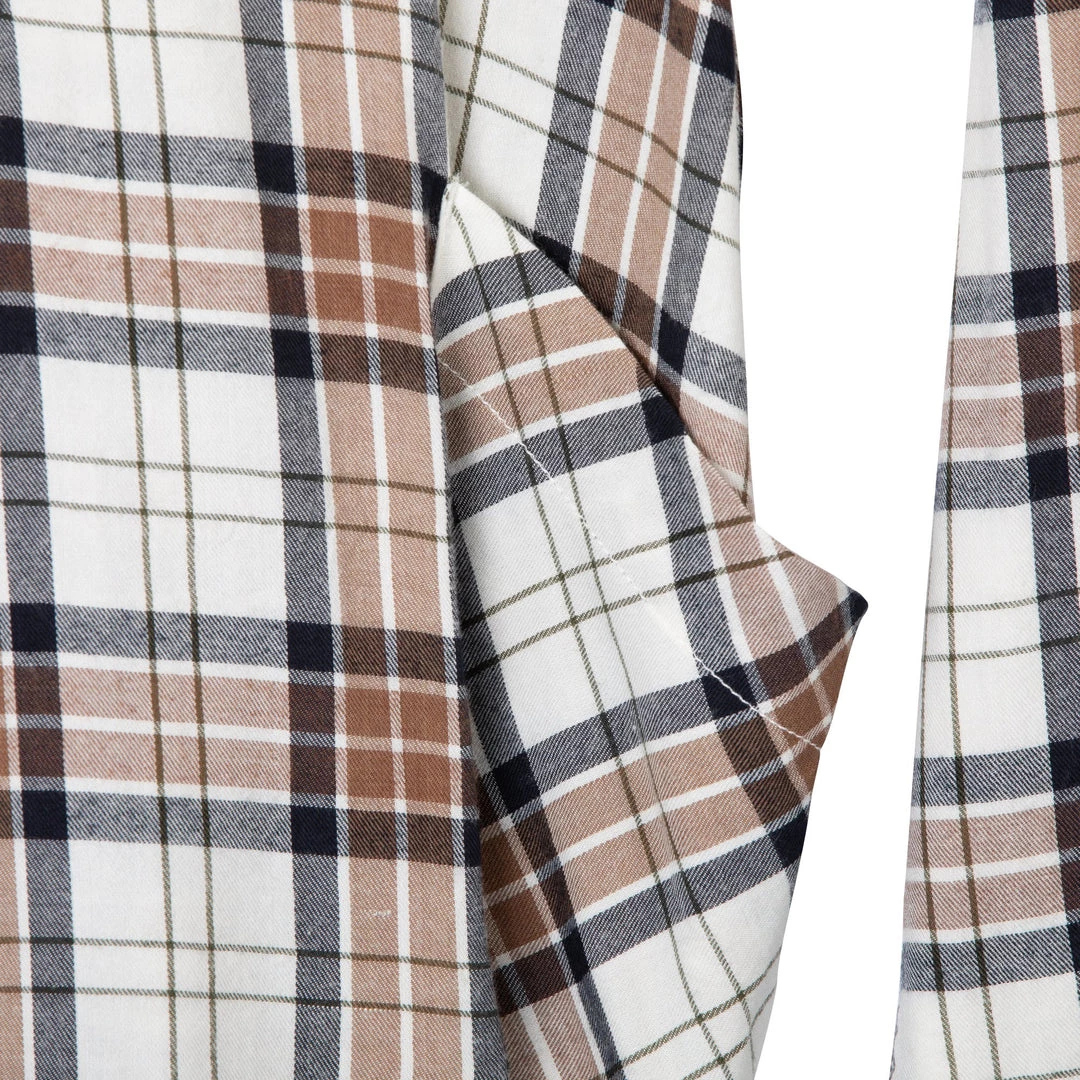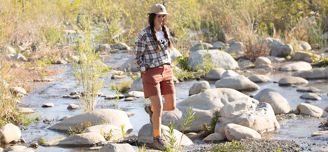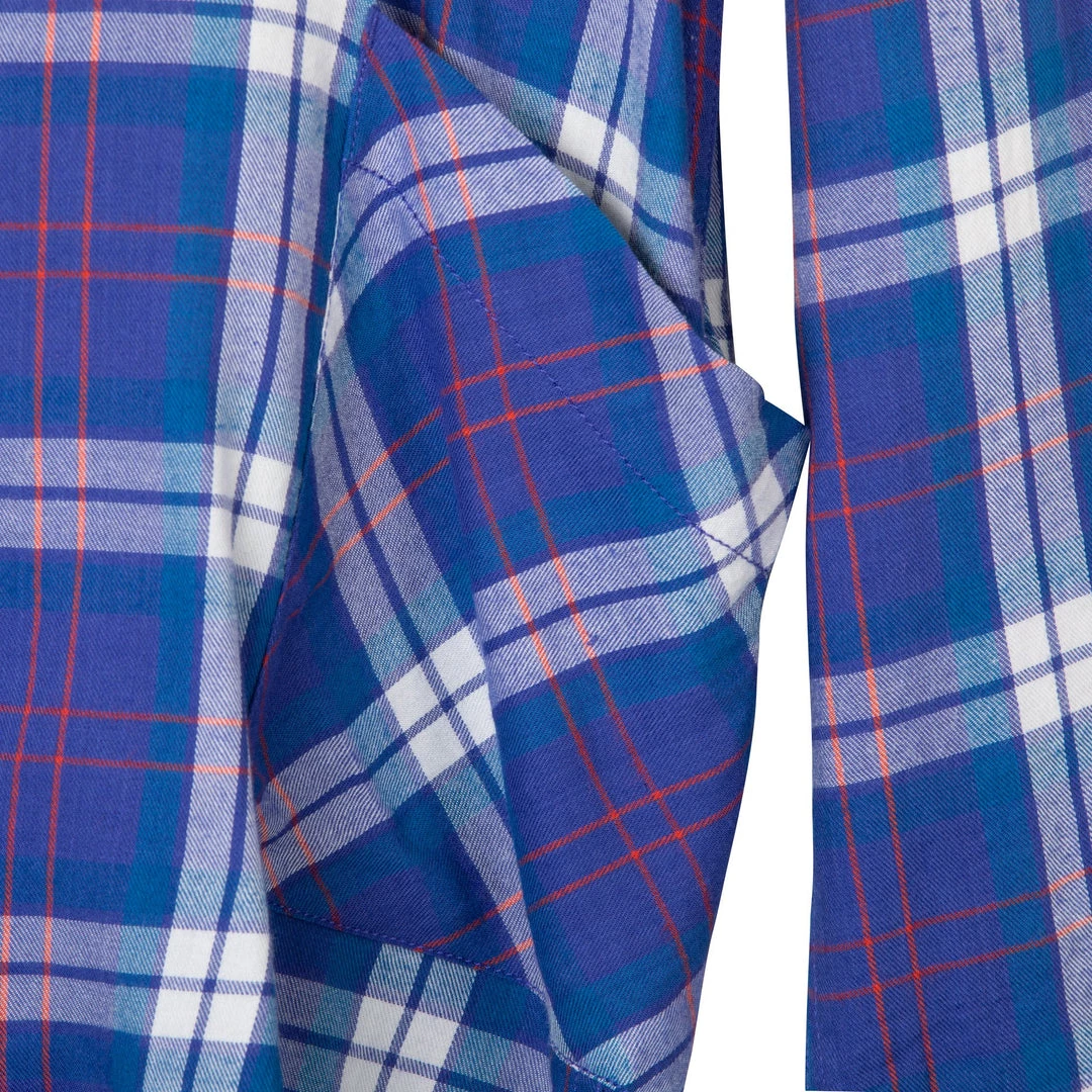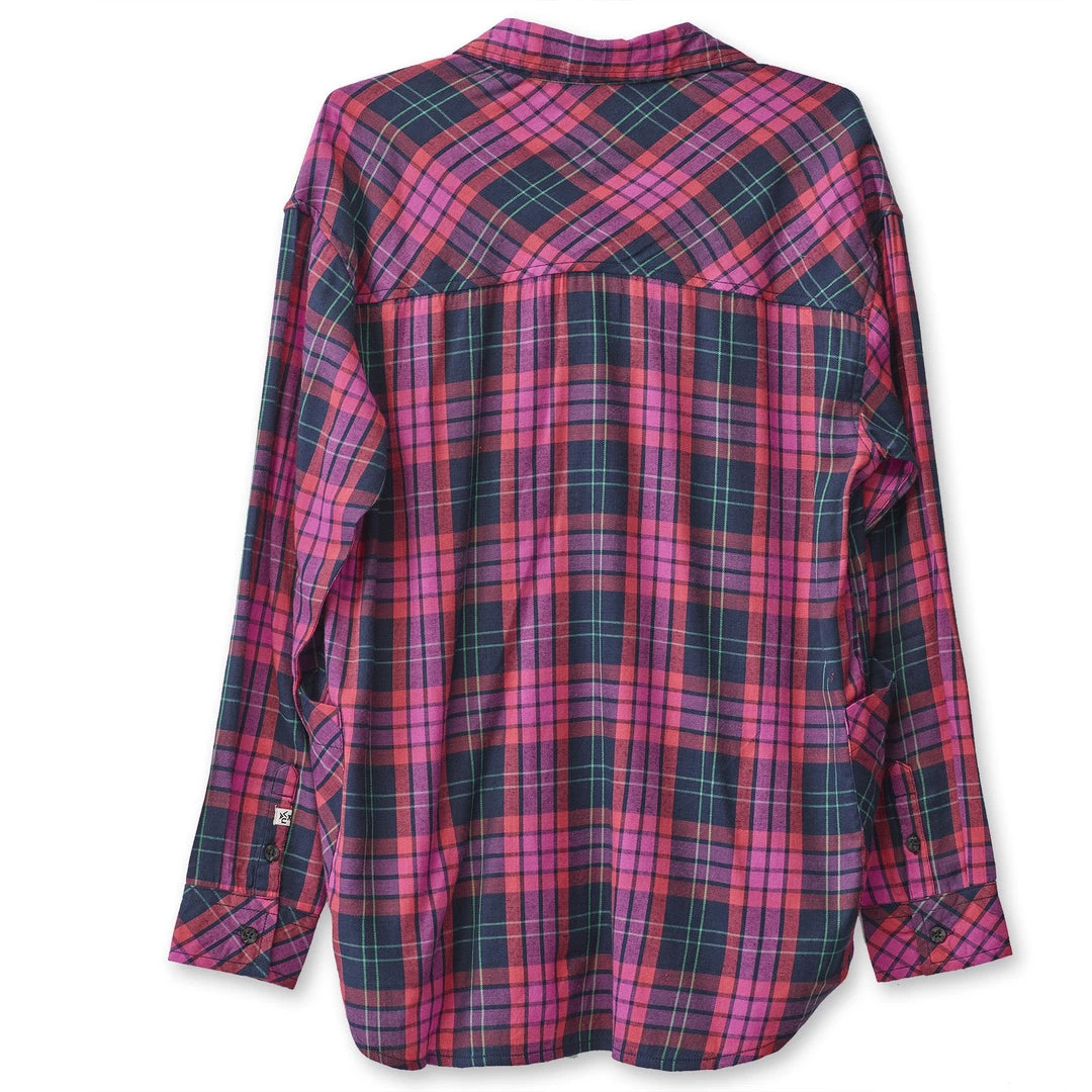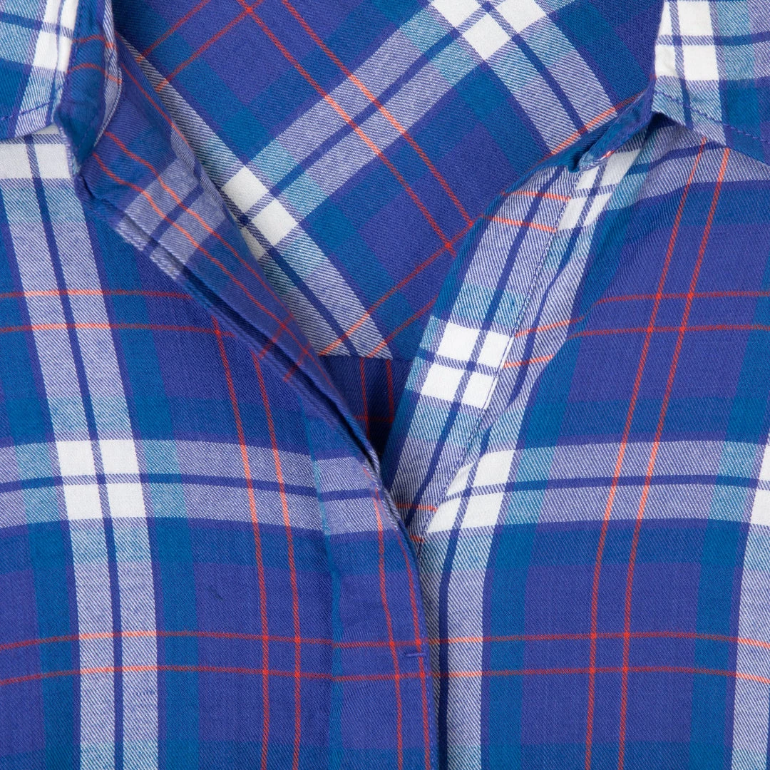 Relaxed fit, long sleeve half placket shirt with hidden 25% certified recycled polyester matte buttons, stand collar, lower patch pockets, deep curved hem.