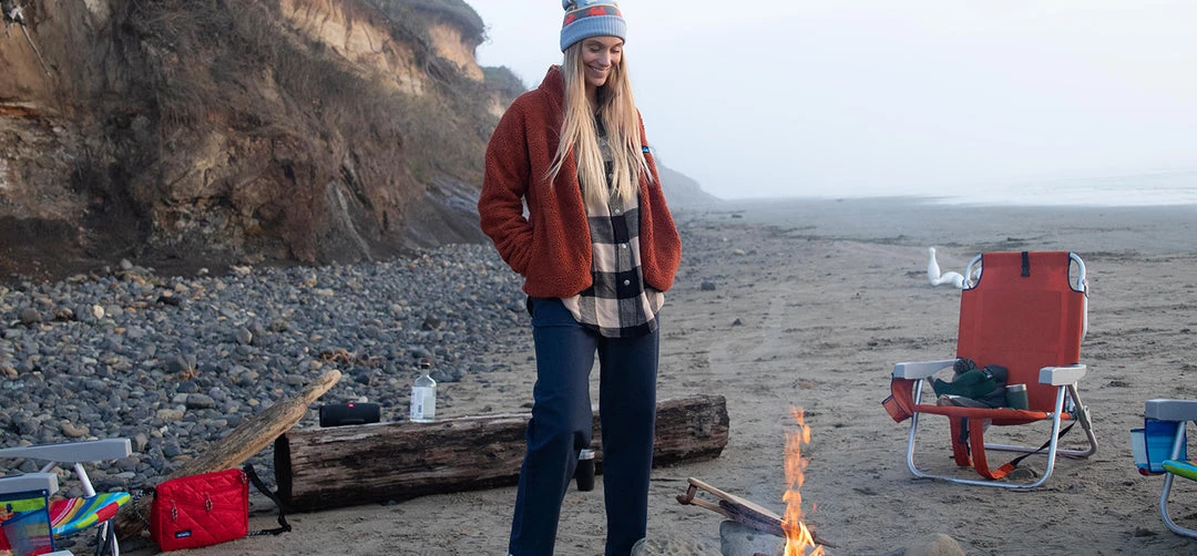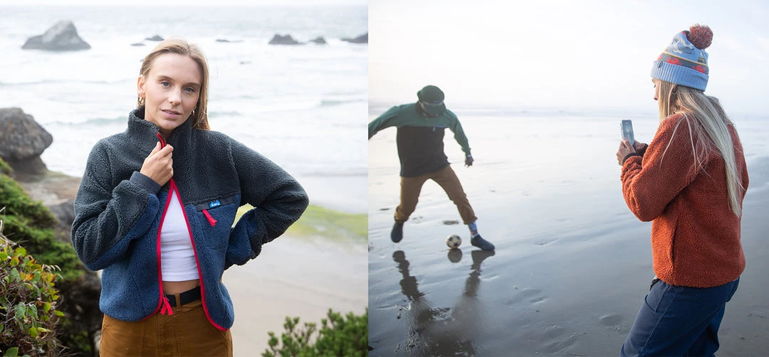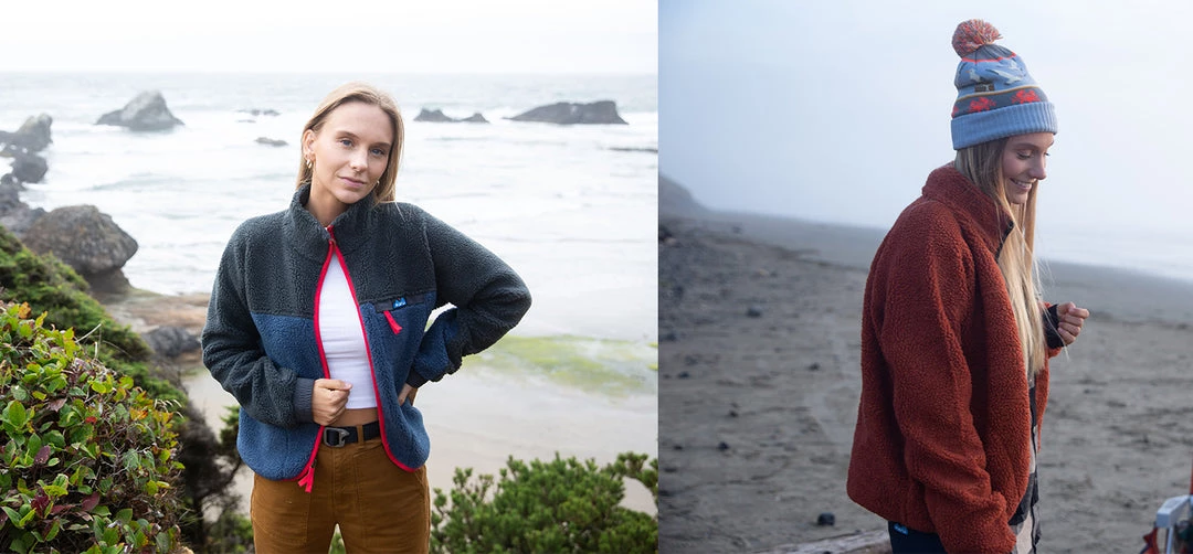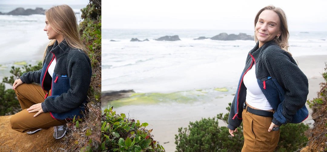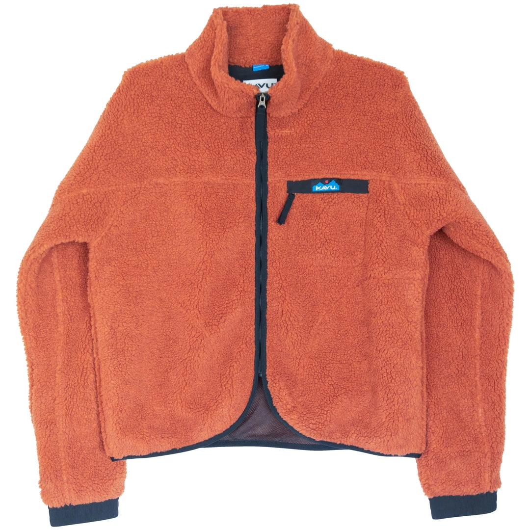 The Pinesdale has successfully fused style and function. This high pile Sherpa fleece jacket with a hip length and curved front hem, and classic KAVU patterned webbing embraces KAVU styling and outdoor chic.Â